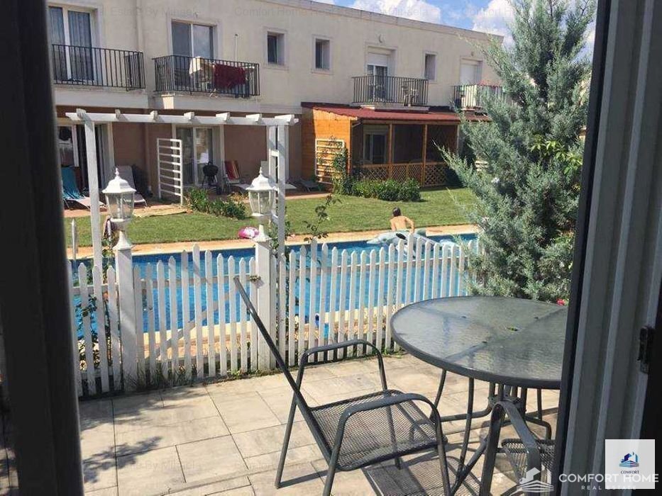Oferim spre vânzare casa 4 camere, 90 mp, an construcție 2015, cu 2 bai, incalzire prin pardoseala, curte de 20 mp, acces la piscina din spatele casei, 2-3 locuri de parcare (30 mp teren amenajat pt parcare).